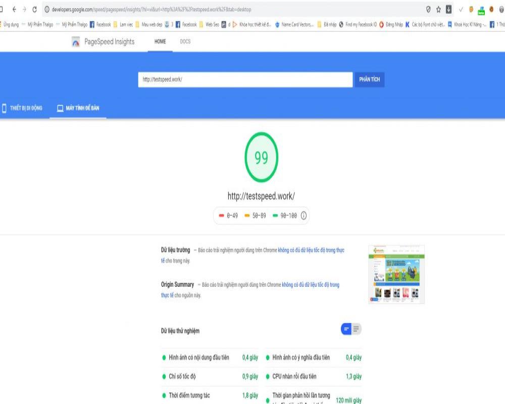 Theo trình tự, Google PageSpeed Instight sẽ cung cấp các thông tin sau: